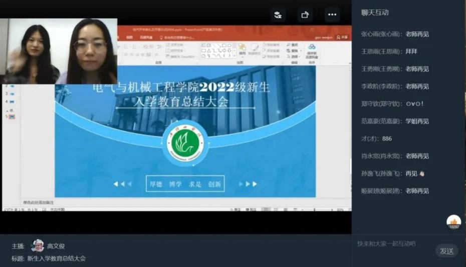 下午4点,辅导员高文俊、茹菲菲线上开展新生入学教育总结大会。
