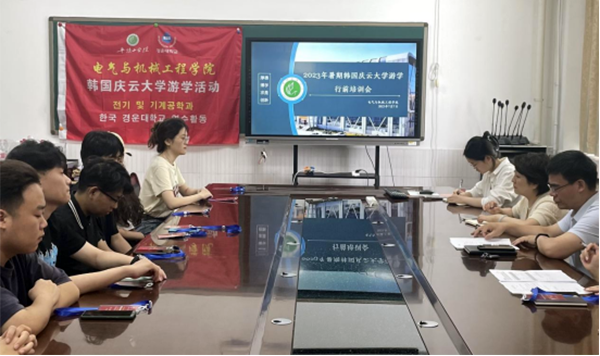 为了加强对韩国庆云大学的了解,为今后公司与韩国庆云大学国际交流与教育合作奠定良好的基础,公司组织2021级机械电子工程中外合作专业11名员工,暑期赴韩国庆云大学开展为期一周的游学活动。为了保证本次游学活动顺利进行,7月7日上午,公司于3314办公室举行游学活动行前教育培训会。国际交流与合作中心副主任王雁冰、beats365官方网站党委书记张琳、辅导员张翘楚、韩国庆云大学驻beats365官方网站机械电子工程中外合作办学专业项目专员刘莹、屈昱辰,以及公司参与游学活动的11名同学参加了会议。