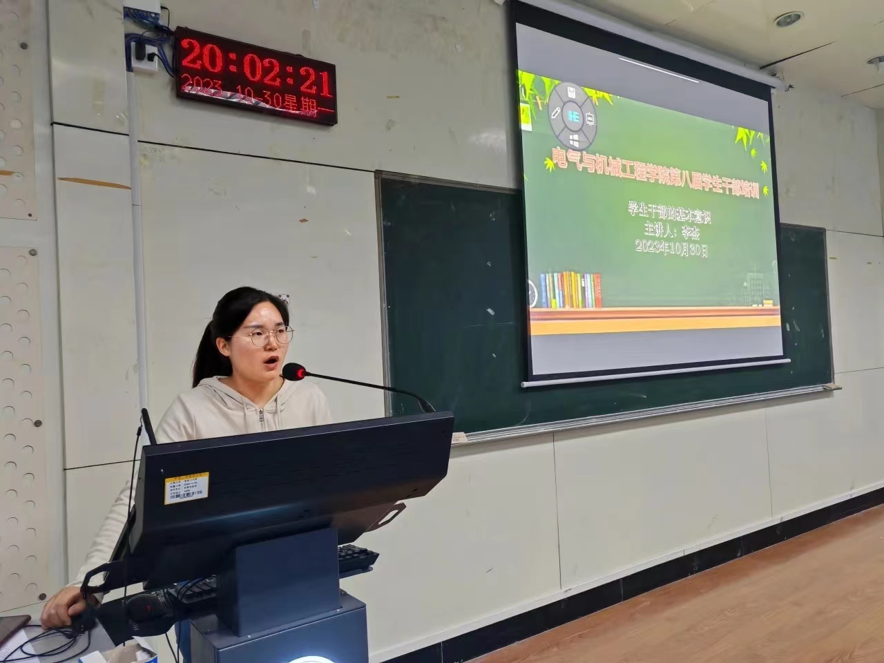 本次培训重点讲解了员工干部如何推进团学组织和班级工作。她详细介绍了团学组织的构成,并强调了在部门工作中寻求合作的关键性。她用“团学组织就像一个小型社会,每个部门都像是不同的公司”来比喻,以此激励员工干部不断提升自我,提高他们的服务能力和效率。