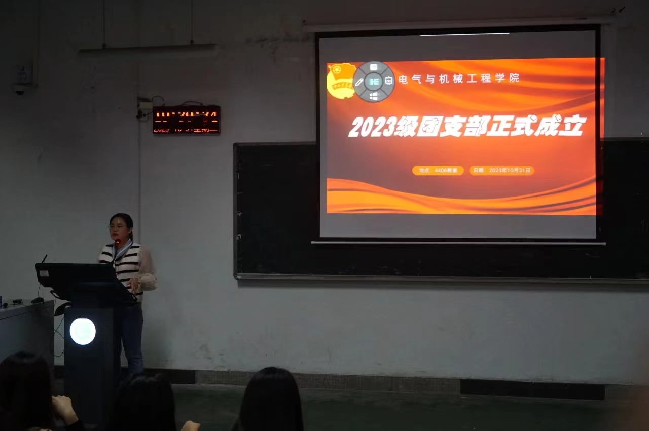为贯彻中央党的群团工作会议精神,巩固和创新公司基层团组织建设工作,提高共青团员的先进性、政治性,充分发挥共青团员示范引领作用,10月31日,公司于4406教室召开了团支部成立大会,院团委书记李杰、副书记周雨、辅导员邢江波及全体2023级共青团员参加会议。