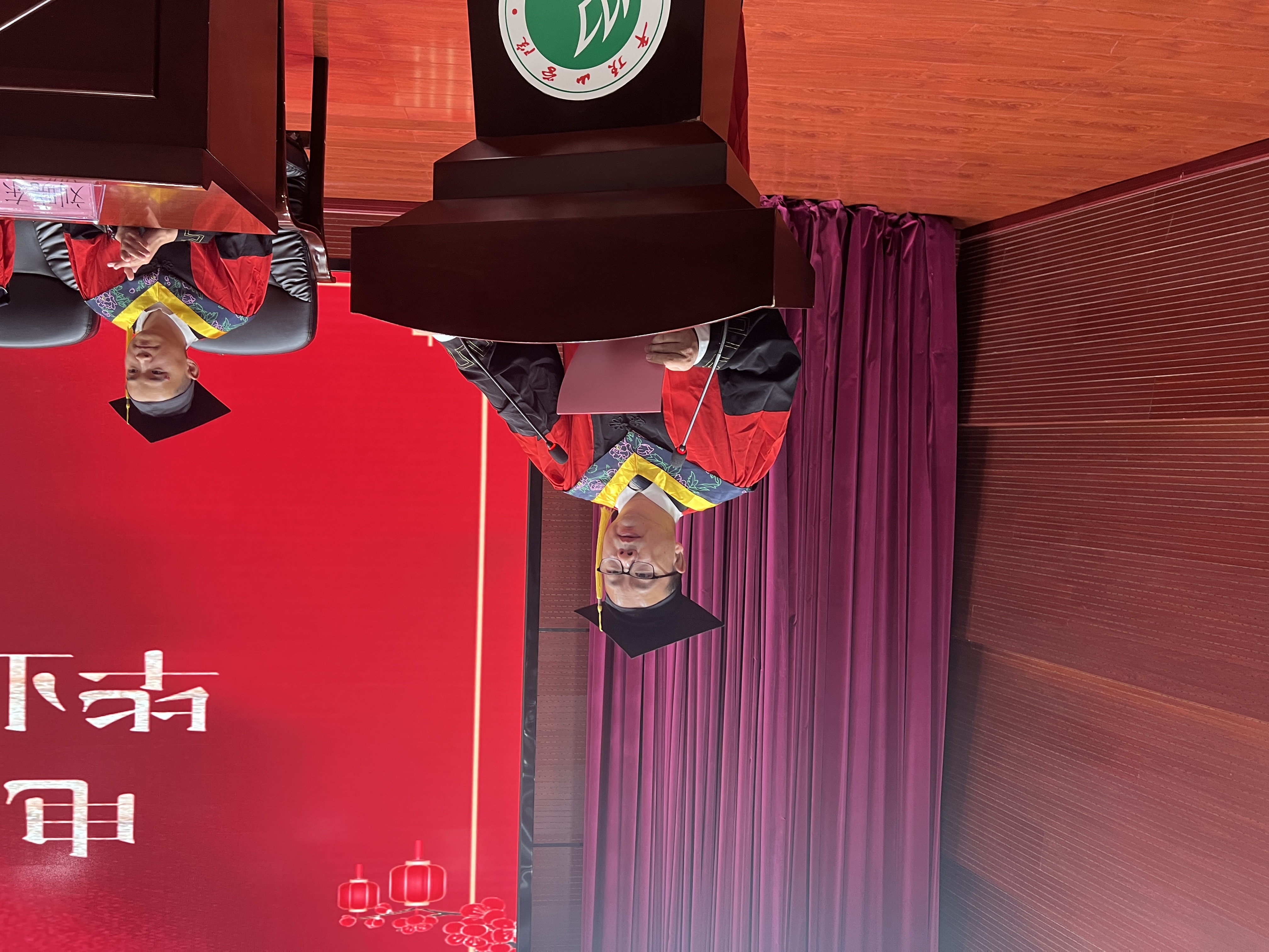 在学士学位授予仪式中,公司17名教师代表为毕业生行拨穗礼、颁发学位证书。
