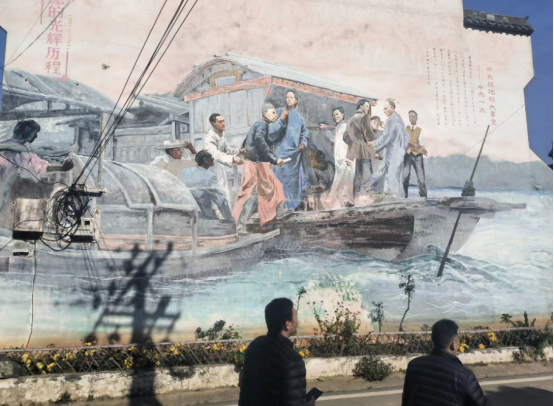 最后,大家前往桐树庄村错落有致的徽派建筑村居参观,中共一大、秋收起义、南昌起义、井冈山会师、万里长征,墙壁上一幅幅巨型彩绘图引人驻足观赏。