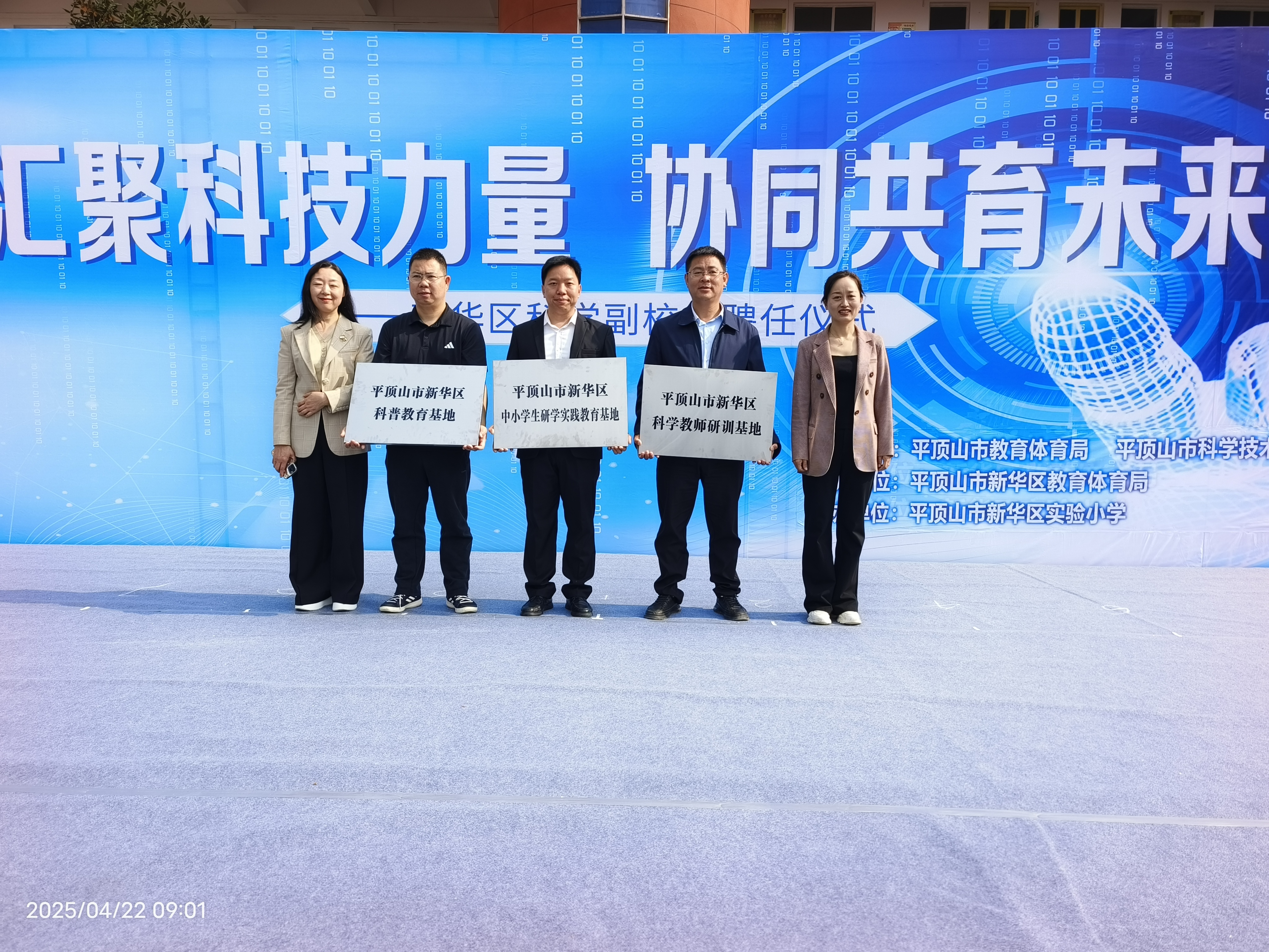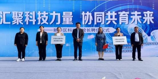 2025年4月22日上午,新华区科学副董事长集中聘任仪式在实验小学隆重举行。市教体局四级调研员段晓兵,区政府三级调研员白珊,区教体局党组书记、局长杨艳红,区科协主席刘光耀,区科技局副局长曹丽共同参与了科学副董事长聘任活动。