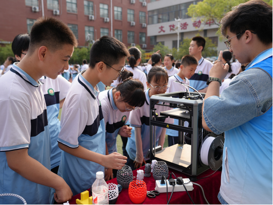 科技展示环节,科普团携公司自主研发的多款智能科技装备震撼登场,吸引师生驻足。3D打印展区前人头攒动,一台正在工作的3D打印机吸引众多目光,机器喷头精准地吐出熔融材料,层层堆叠间,一个精密的机械零件逐渐成型。激光雷达小车在地上自如穿行,其搭载的高精度激光雷达系统实时构建三维点云地图。大四轴无人机凭借自主研发的飞控系统,展示了无人机在巡检、测绘等领域的重要应用价值。自动写字机器人融合了机械工程与书法艺术的智能设备,通过高精度伺服控制系统驱动机械臂,在宣纸上挥毫泼墨。短短一分钟内,一幅笔力遒劲的“科技创新”书法作品便跃然纸上,引得观众连连赞叹。