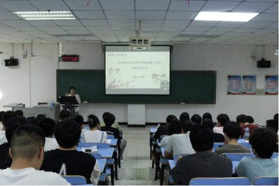 张琳从《易经》和《道德经》的智慧启迪、儒释道文化的理想人格和人生境界追求、王阳明心学的立志观、《大学》的内圣外王之道等方面展开讲解,带领同学们深刻感受中华优秀传统文化中蕴含的智慧力量。张琳指出,同学们在专业学习之外,更需注重人文素养的提升,从中华优秀传统文化中汲取开启智慧、塑造人格、提升境界、拓展格局、增强能力的思想精华,树立正确的世界观、人生观、价值观和远大的人生志向,从提升自我修养做起,肩负起对社会、对国家的责任担当,追求更有意义和价值的卓越人生。