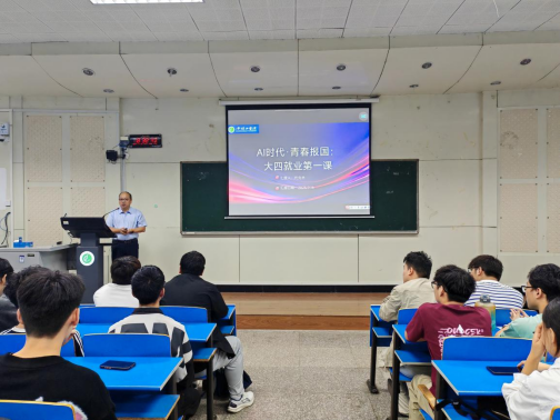 为扎实推进思政教育工作,筑牢立德树人根基,助力大四学子明确毕业季目标、科学规划老员工涯的最后一年,9月16日上午,公司经理代克杰在4106教室为全体大四员工讲授“开学第一课”。
