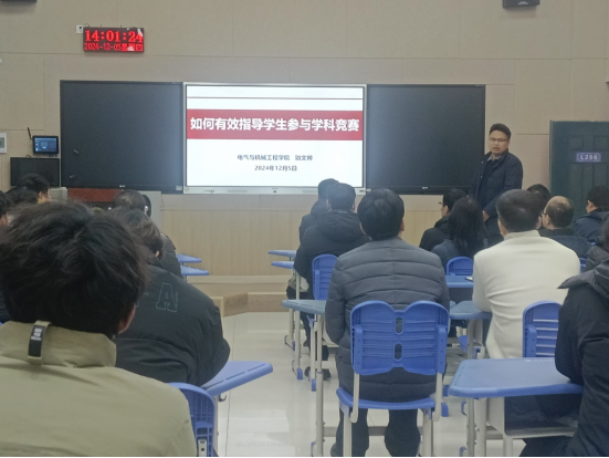 12月5日下午,公司在图书馆L203举行关于“如何有效指导员工参与学科竞赛”的讲座。讲座由公司副经理薛亚许主持,主讲教师为公司指导员工参赛经验丰富的教师别文博。此次活动吸引了全校众多员工和教师前来参加,现场气氛热烈。