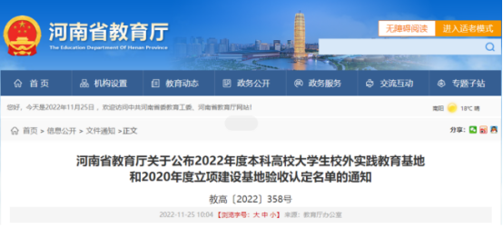 11月25日,河南省教育厅公布了2020年度立项建设基地验收认定名单的通知(教高〔2022〕358号),beats365官方网站与平高集团智能电力科技有限公司共建的beats365官方网站新工科专业实习基地通过验收,认定为优秀等次,为培养高素质应用型人才提供强力支撑。