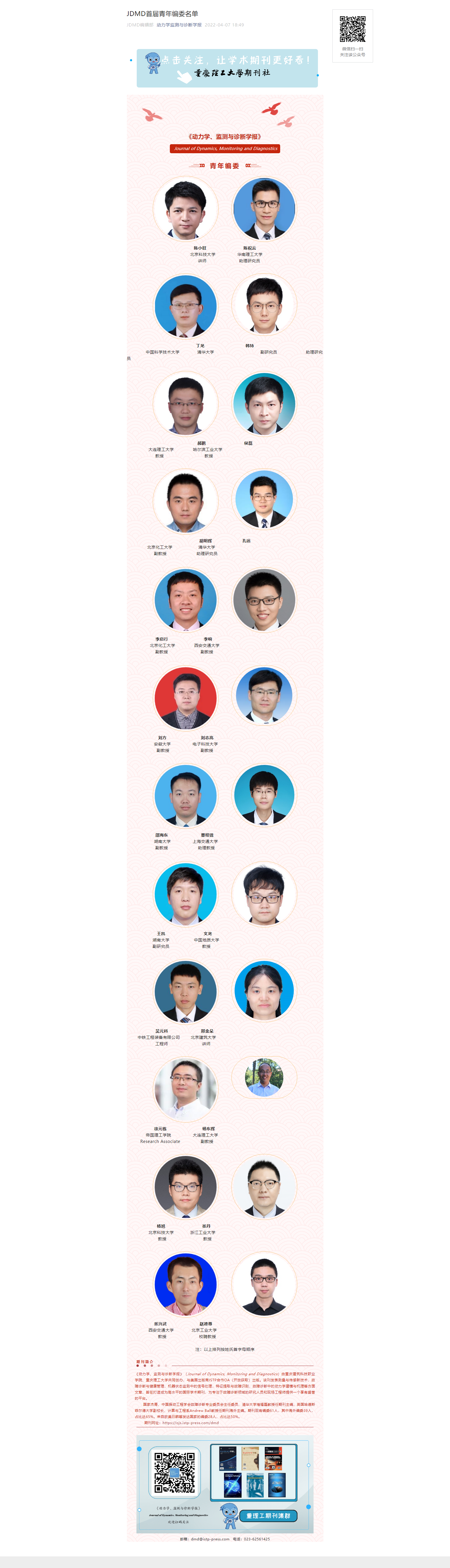 公司吴元科老师入选《动力学、监测与诊断学报》青年编委