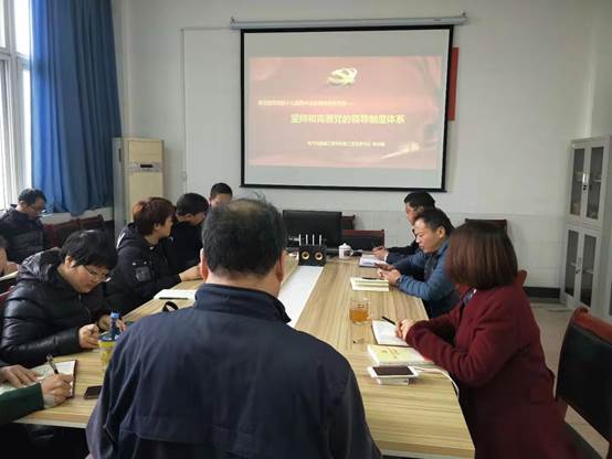 2019年11月29日,beats365官方网站教工党支部于3317党建活动室开展学习宣传党的十九届四中全会精神专题党课,本次党课由教工支部书记赵志敏同志领学,全体教工党员参加了此次会议,本次党课的题目为“坚持和完善党的领导制度体系”。