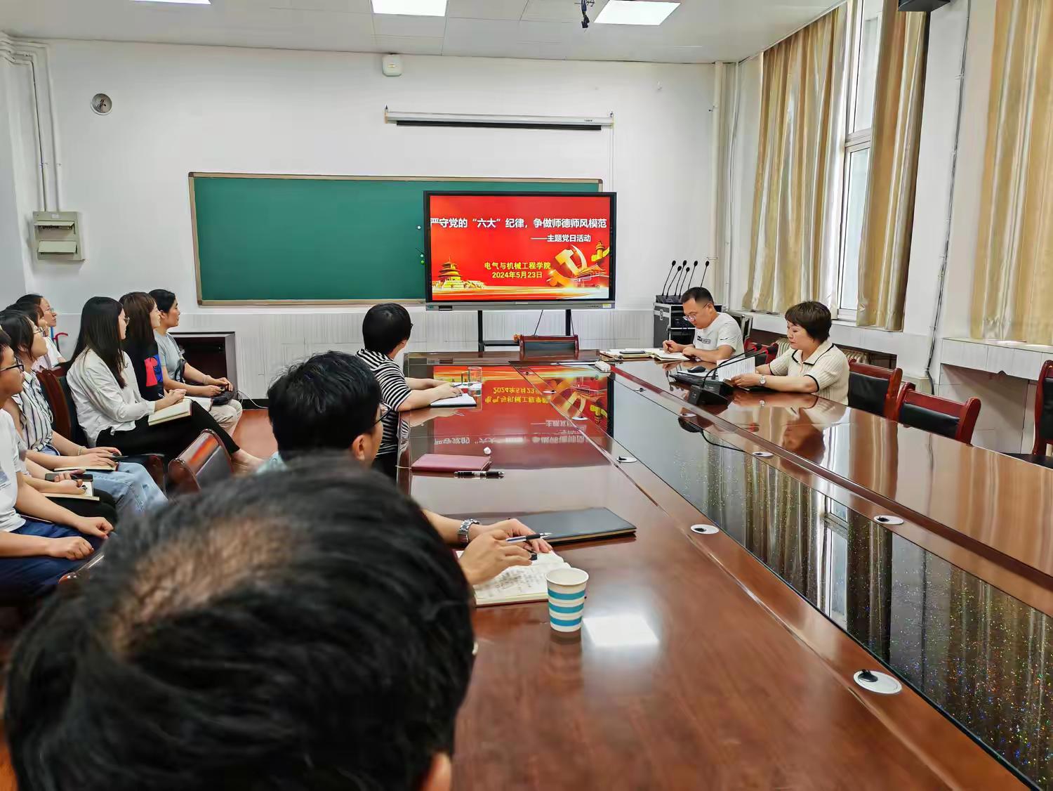 为深入推进全面从严治党,加强党风廉政建设,增强广大教师依法用权、廉洁从教的意识,5月23日下午,公司教工党支部在3314会议室开展了“严守党的六大纪律 争做师德师风模范”主题党日活动。本次活动由党支部书记杜豪杰主持,全体党员教师出席。