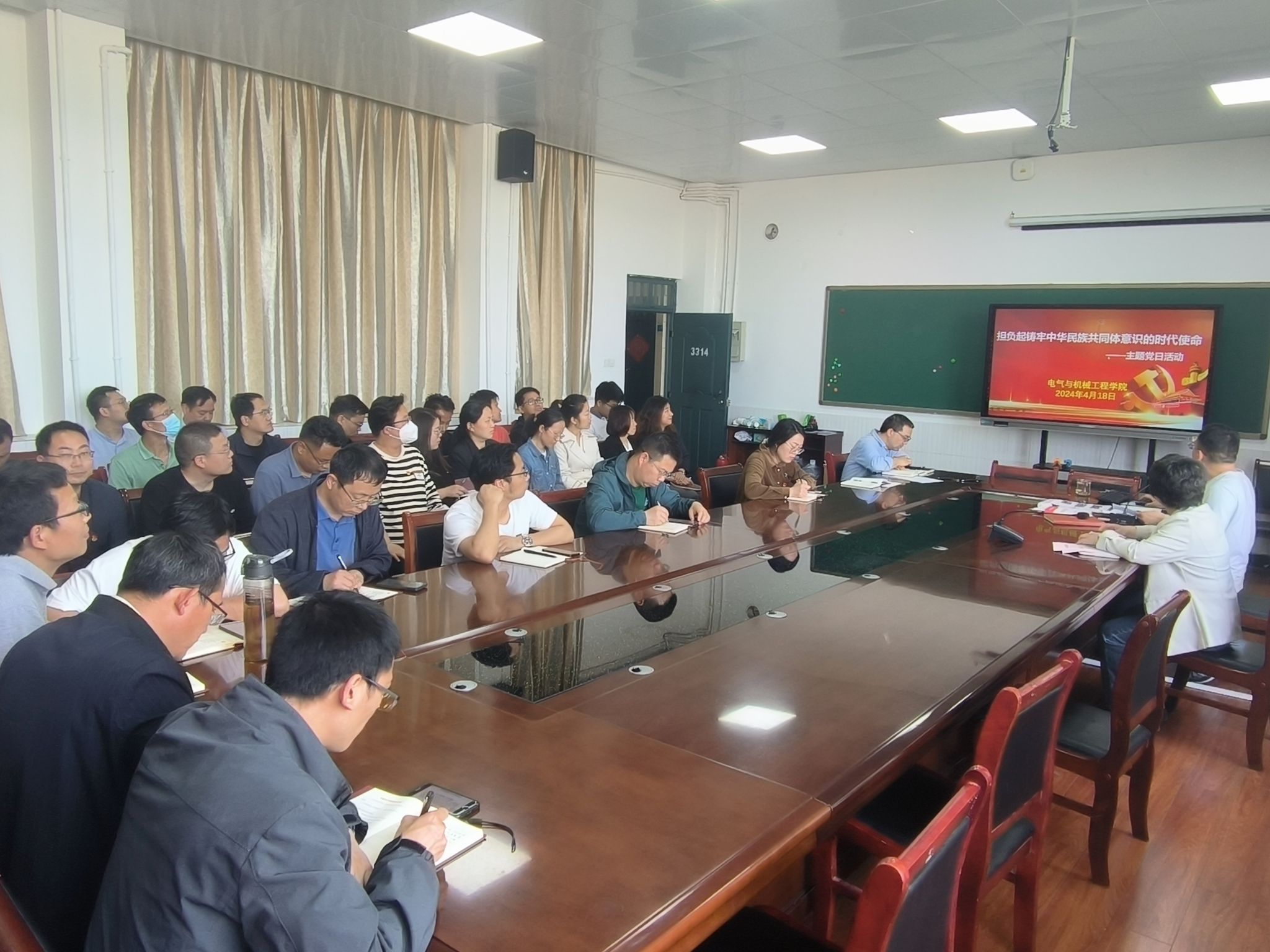 2024年4月18日下午15:00,beats365官方网站教工支部在三号楼3314召开全体党员大会,开展“担负起铸牢中华民族共同体意识的时代使命”主题党日活动,会议由教工支部书记杜豪杰同志主持。