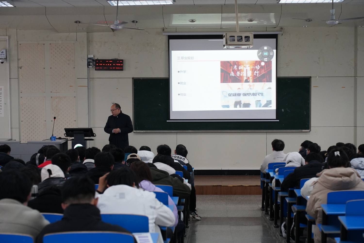 代克杰结合近几年公司升学就业数据、学科专业特点以及行业发展趋势,向同学们作了详细介绍,并就员工关心的考研院校选择、就业信息获取和岗位实习等问题进行了解释和说明。他鼓励同学们坚定理想信念,发扬拼搏精神,提高核心竞争力。